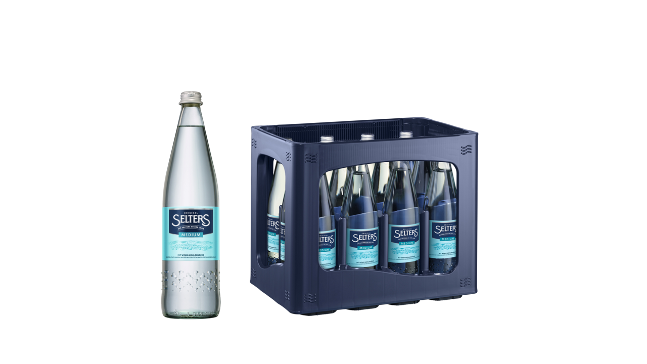 SELTERS Medium bildet die Mitte zwischen den stillen und prickelnd-spritzigen Sorten von SELTERS. Sein filigran feinperliger Geschmack kommt durch gemäßigte 3,8 g Kohlensäure pro Liter zustande. Dabei ist es mineralisch sehr ausgewogen. SELTERS Medium empfiehlt sich besonders zu trockenen Weißweinen und klassischen deutschen Rotweinen als ideale Begleitung.