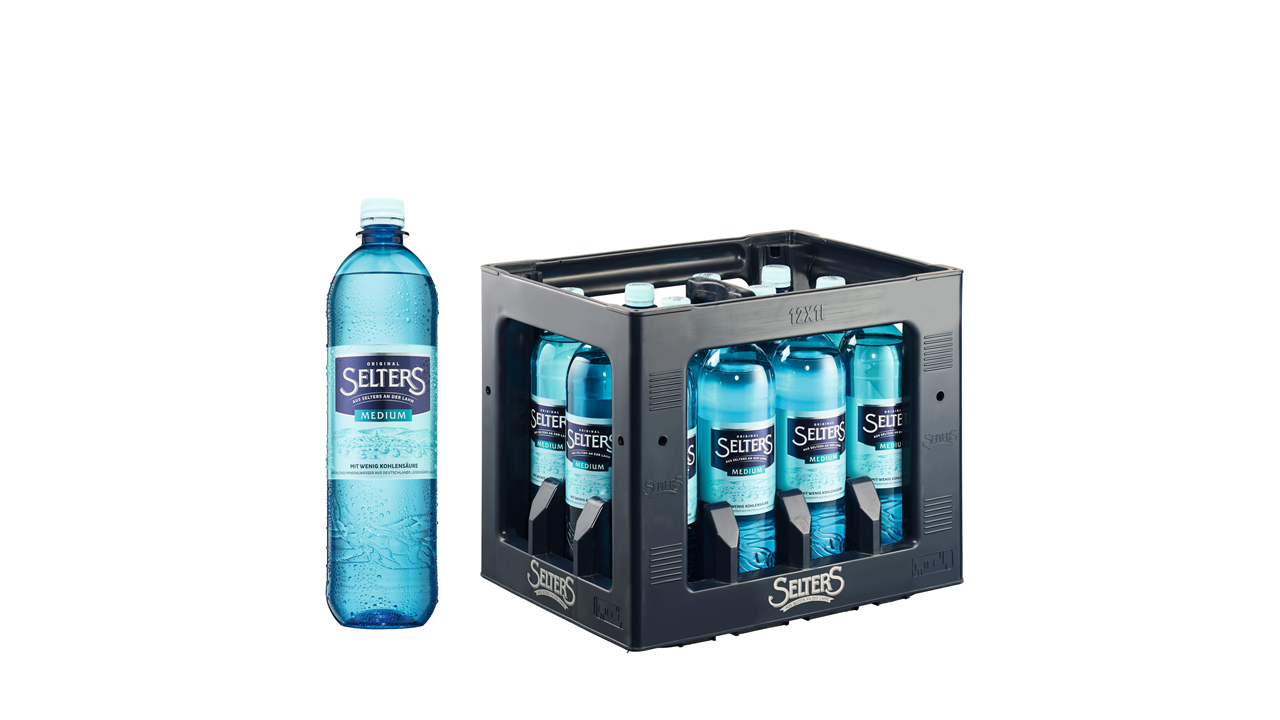 SELTERS Medium bildet die Mitte zwischen den stillen und prickelnd-spritzigen Sorten von SELTERS. Sein filigran feinperliger Geschmack kommt durch gemäßigte 3,8 g Kohlensäure pro Liter zustande. Dabei ist es mineralisch sehr ausgewogen. SELTERS Medium empfiehlt sich besonders zu trockenen Weißweinen und klassischen deutschen Rotweinen als ideale Begleitung.